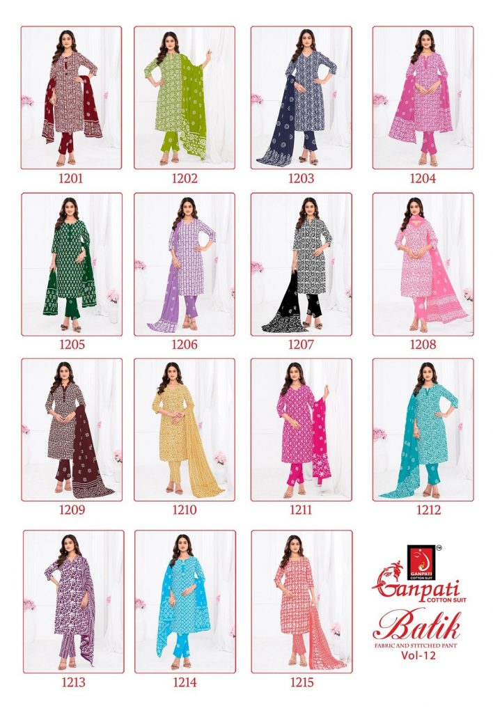 | Catalog | Ganpati Batik Vol-12 – Kurti Pant With Dupatta |