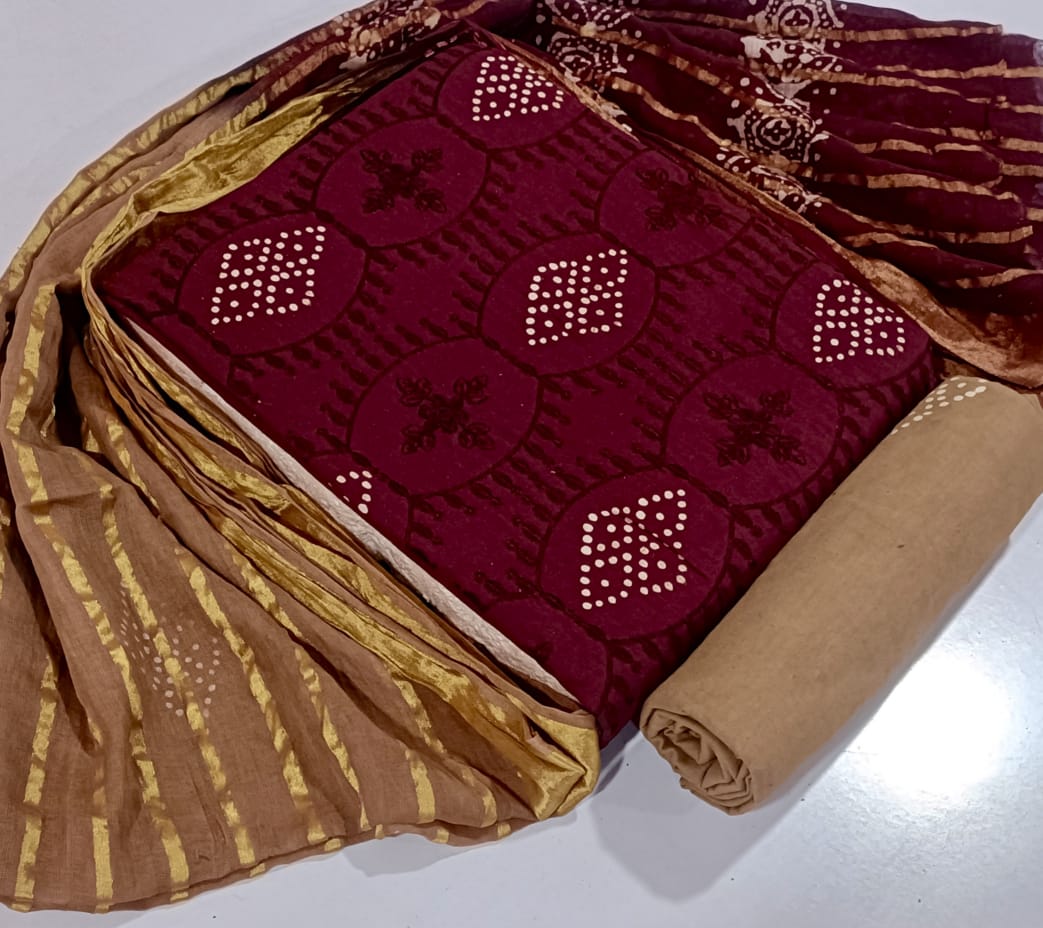 Top :- Heavy Camric Cotton Wax Batik Work | Cut :- 2.50 Mtrs |