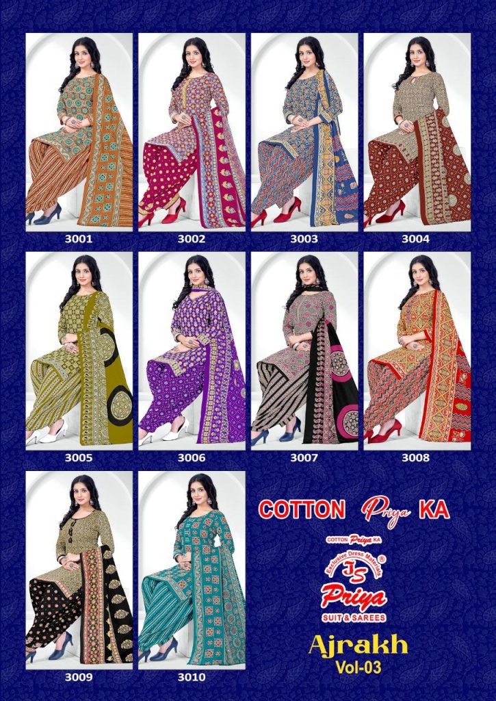 | Catalog | Js Priya ajrakh Vol-3 – Dress Material |
