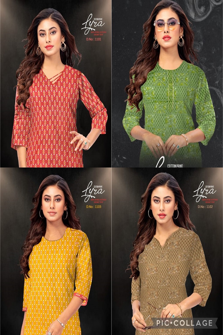 BOOK CATALOGUE Lyra Vol-1 – Cotton Printed Short Tops ON MAA NARAYANI FASHION .CALL ON +91-9376434054